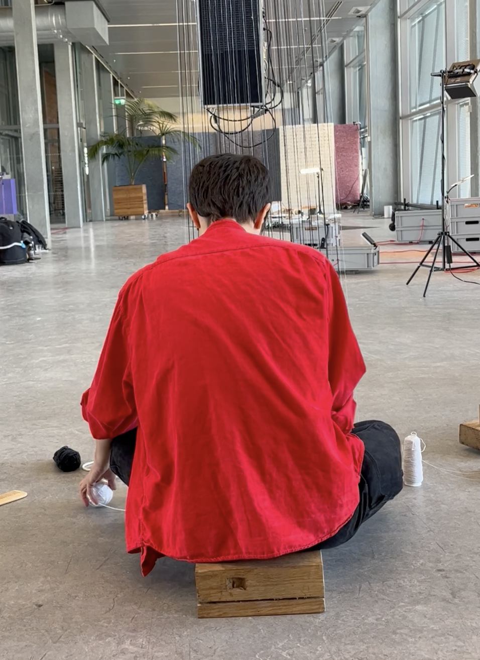 born under thread investigates the relationship between textile-making and computational logic through a network of looms connected to Raspberry Pi microcomputers. Each touch on the conductive yarns generates data that weaves itself into live visual and sonic patterns, approaching computation as an embodied, relational process. At its core, this project aims to pull computation down from the cloud and return it to the collective.